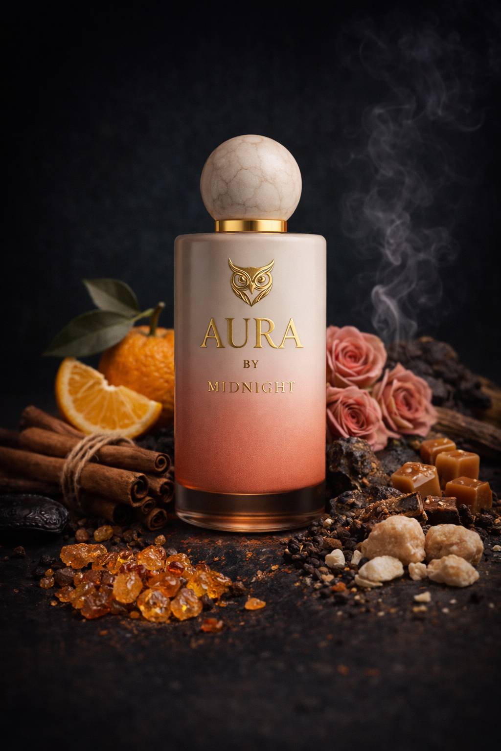 AURA هو عطر دافئ وفخم يعكس هدوء الليل وقوته في آنٍ واحد.